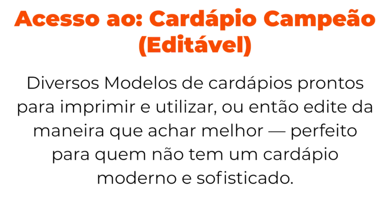 BÔNUS: Acesso ao Cardápio Campeão